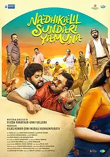 Nadhikalil Sundari Yamuna (transl. Yamuna, the prettiest among rivers) is a 2023 Indian Malayalam-language comedy-drama film written and directed by Vijesh Panathur and Unni Vellora (in their directorial debut).[3] Set in Kadambery, the narrative unfolds the conflict between Kannan (Dhyan Sreenivasan) and Vidhyadharan (Aju Varghese) regarding their matrimony, and the subsequent chain of events. The film also features Pragya Nagra (in her Malayalam debut), Sudheesh, Kalabhavan Shajohn, Sohan Seenulal, Nirmal Palazhi and Aneesh Gopal in significant roles.