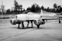 The Nakajima Kikka (橘花, "tachibana orange blossom"), initially designated Kōkoku Nigō Heiki (皇国二号兵器, "Imperial Weapon No. 2"), was Japan's first turbojet-powered aircraft. It was developed late in World War II, and the single completed prototype flew only once, in August 1945, before the end of the conflict.