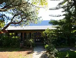 The house is located on a 1556 square meter block.[5] There are several mature trees to the street boundary which obscure views. The front garden is a cottage garden which is overgrown in some places.[4] Mature trees include Mexican pine (Pinus patula). An historic photo shows clearly the front facade "framed" by a Cook's pine (Araucaria columnaris) and a Norfolk Island pine (Araucaria heterophylla).[6][1]