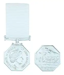 - ↑ "Insignia of New Zealand State Awards | The New Zealand Antarctic Medal (obverse and reverse)". www.dpmc.govt.nz. Department of the Prime Minister and Cabinet. Retrieved 24 December 2023.