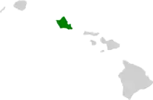 The bird is Critically Endangered and possibly extinct due to disease (avian malaria), introduced and invasive plants and wildlife, and habitat loss. The last specimen was collected in 1968 and this is considered by some authorities to be the last reliable report. The last visual observation was of two individuals on the Poamoho Trail (near Wahiawa) in a Christmas Bird Count on 12 December 1985.[2]