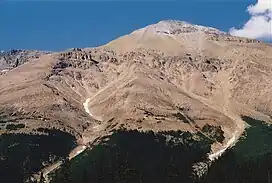 Like other mountains in Banff Park, the mountain is composed of sedimentary rock laid down during the Precambrian to Jurassic periods.[6] Formed in shallow seas, this sedimentary rock was pushed east and over the top of younger rock during the Laramide orogeny.[7]