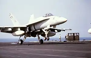 |  A VMFA-314 F/A-18A lands on USS Coral Sea | |||||||