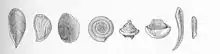 - imbricated, or lamellar: when it grows only on one side, and the nucleus is marginal, as in Purpura, Xenophora, and Paludomus.