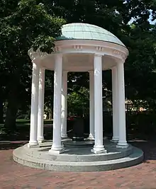 Chartered by the North Carolina General Assembly on December 11, 1789, the University of North Carolina's cornerstone was laid on October 12, 1793, near the ruins of a chapel, chosen for its central location within the state.[8] Beginning instruction of undergraduates in 1795, UNC is the oldest public university in the United States and the only one to award degrees in the 18th century.[9][10]