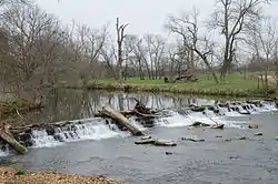 The Osage Mills Dam is a historic dam in rural Benton County, Arkansas. It impounds Little Osage Creek, just upstream of Mill Dam Road (County Road 47), between Rogers and the Northwest Arkansas Regional Airport. The dam was built c. 1890 out of coursed stone with a rusticated face. It was built to provide power to a grist mill that served the area, of which only a small portion of the millrace remains visible. The dam is the only known structure of its type in the county.[2]
