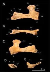- 1 2 Longrich, Nicholas R.; Isasmendi, Erik; Pereda-Suberbiola, Xabier; Jalil, Nour-Eddine (August 2023). "New fossils of Abelisauridae (Dinosauria: Theropoda) from the upper Maastrichtian of Morocco, North Africa". Cretaceous Research: 105677. doi:10.1016/j.cretres.2023.105677.