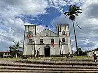 In October 1737, the Book of Deaths started to register deaths in Corumbá de Goiás, where the Chapel of Our Lady of Peñafrancia, inaugurated in 1734 and subordinated to the Rosary Parish, began to be attended by Father Antônio Soares.[1][9] The Chapel of Peñafrancia, elevated to the status of Mother Church in 1840, was the pioneer of the parishes of Abadiânia, Alexânia and Cocalzinho.[10][11][12] The Portuguese influence of the Our Lady of the Rosary Parish replicated the traditions of Pirenópolis in the Chapel of Peñafrancia in Corumbá, such as the Brotherhood of the Blessed Sacrament, Holy Week celebrations, Feast of Saint Sebastian, Feast of the Divine, Choir, Orchestra and band in the masses and processions, as well as the Cavalhadas, held in the city in September during the patron saint's feast.[9]