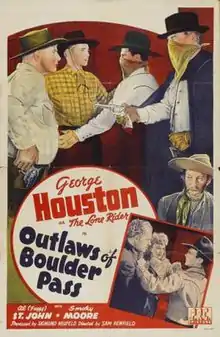 Outlaws of Boulder Pass is a 1942 American Western film directed by Sam Newfield. The film stars George Houston as the "Lone Rider" and Al St. John as his sidekick "Fuzzy" Jones, and Dennis Moore as Sheriff Smoky Hammer, with Marjorie Manners, I. Stanford Jolley and Karl Hackett. The film was released on 12 June 1942, by Producers Releasing Corporation.[1][2][3]