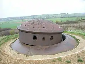 The village of Villy lies about one kilometre to the north-west of ouvrage La Ferté. Villy itself was fortified with more than a dozen blockhouses, along with networks of barbed wire and tank obstacles. The blockhouses were primarily prepared, reinforced firing positions and did not necessarily possess fixed armament.[9][15]