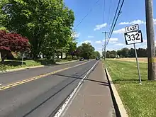 What would become PA 332 between Newtown and Yardley was designated as part of Legislative Route 252 in 1911, which continued southeast from Yardley to Morrisville.[6] In 1928, PA 332 was designated to run from PA 263 in Hatboro east to Ivyland, with the portion of road between Newtown and Yardley designated as part of PA 532. Between Ivyland and Newtown, the road remained an unnumbered road that was paved with the exception of a portion west of Newtown.[2] PA 332 was extended from Ivyland east to end at PA 113 (State Street) in Newtown in 1937, with the entire route paved by 1940. PA 332 entered Newtown from the west on Richboro Road.[7][8] In 1943, PA 332 within Warminster Township was widened as part of a military access road to Naval Air Development Center, Johnsville, costing $93,789.[9][10]