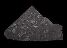 | Pollingeria | Animalia | non-applicable | 3080 specimens | This problematic genus is worm-like in appearance, and is long and thin. Originally it was thought that these fossils represented the chaetae of polychaete worms. More recently, it has been assumed that each individual "chip" represents an entire organism.