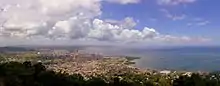 The Gulf of Paria (/ˈpæriə/ PA-ree-ə;[1] Spanish: Golfo de Paria) is a 7,800 km2 (3,000 sq mi) shallow (180 m at its deepest) semi-enclosed inland sea located between the island of Trinidad and the east coast of Venezuela. It separates the two countries by as little as 15 km at its narrowest and 120 km at its widest points. The tides within the Gulf are semi-diurnal in nature with a range of approximately 1m.[2] The Gulf of Paria is considered to be one of the best natural harbors on the Atlantic coast of the Americas. The jurisdiction of the Gulf of Paria is split between Trinidad and Venezuela with Trinidad having control over approximately 2,940 km2 (1,140 sq mi) (37.7%) and Venezuela the remainder (62.3%).[3]