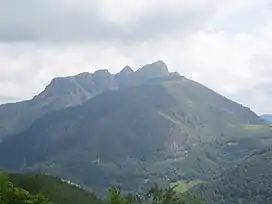 The range is very popular with the inhabitants of the area. Other neighbouring towns are Irun on the north and Lesaka on the east. The massif comprises three summits extending 4-odd kilometres north to south in a row, namely Irumugarrieta (806 m), Txurrumurru (821 m) and Erroilbide (837 m). Its characteristic shape can be made out approximately from as far as Bayonne (north), the massif being dubbed the "face of Napoleon" on account of its similar outline, while its actual French name is Les Trois Couronnes. At its western foot, the mountain holds the site Arditurri related to ancient Oiasso with a network of mine corridors carved in the rock and put down to Romans. Some notable mountains around are Bianditz (827 m) on the south, Jaizkibel (547 m) on the west and Larrun (905 m) on the north-east.