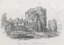 The Welsh name Pen-coed means "end of the wood", and refers to the site's location at the southwestern extremity of the Wentwood forest.[3] It was the site of a Norman castle, owned by Sir Richard de la More in 1270. The tower at the south-west corner of the extant ruins dates from the late 13th century.[3][4][5] The manor of Llanmartin was owned by the Kemeys family around 1300, but it is not clear whether Pencoed was a separate manor at that time.[3]