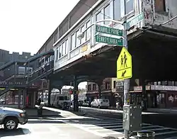 The Pennsylvania Avenue station is a station on the IRT New Lots Line of the New York City Subway. Located at the intersection of Pennsylvania and Livonia Avenues in East New York, Brooklyn, it is served by the 3 train at all times except late nights, when the 4 train takes over service. During rush hours, occasional 2, 4 and 5 trains also stop here.[3]