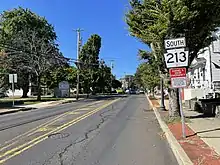 Pennsylvania Route 213 (PA 213) is a 6.95-mile-long (11.18 km) state highway in Bucks County, Pennsylvania. The route runs from PA 532 in Feasterville, which is located in Lower Southampton Township, north to U.S. Route 1 Business (US 1 Bus.) in Middletown Township, near the Oxford Valley Mall. PA 213 is signed as a north-south route but it actually travels east–west through its route, with the northern terminus being well east of the southern terminus but only slightly further north. Along the way, PA 213 passes through the borough of Langhorne and has intermediate junctions with PA 413 in Langhorne and US 1 in Middletown Township. The westernmost part of PA 213 was originally chartered as the Bridgetown and Feasterville Turnpike in 1844. In 1913, the eastern portion of present-day PA 213 became a part of the route for the Lincoln Highway, being bypassed in 1923. PA 213 was designated onto its current alignment in 1928.
