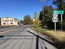 When routes were legislated in Pennsylvania in 1911, the current routing of PA 241 was designated as part of Legislative Route 280, which continued southeast from Bainbridge to Columbia.[5] By 1926, the roadway between Elizabethtown and Lebanon was paved while the road southwest from Elizabethtown to Bainbridge was unpaved.[6] PA 241 was designated in 1928 to run from PA 441 in Marietta north to PA 72 in Lebanon. The route followed Maytown Road north to Maytown, Stackstown Road west to Bainbridge, and PA 441 northwest before it continued northeast along its current alignment to Lebanon and north along Quentin Road to end at PA 72 at Cornwall Road. The entire length of route was paved by 1930.[7][8] In the 1930s, the southern terminus of PA 241 was cut back to PA 340 (now PA 743) in Maytown, with PA 340 replacing the route between Marietta and Maytown.[9] The northern terminus was moved to its current location in the 1950s following the rerouting of PA 72 to Quentin Road.[10][11] The southern terminus of the route was cut back to its current location at PA 441 near Bainbridge in 1961.[12] On June 28, 2021, construction began on a roundabout at Rocherty Road in North Cornwall Township.[13] Construction of the roundabout, which cost $3.4 million, was completed in October 2021.[14]