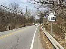 Pennsylvania Route 340 Alternate Truck is a truck route that bypasses a weight-restricted bridge over the West Branch of the Brandywine Creek, on which trucks over 21 tons and combination loads over 25 tons are prohibited. The route follows PA 10, US 30, and PA 82 through the western portions of Chester County, Pennsylvania. The route was signed in 2021.[21]