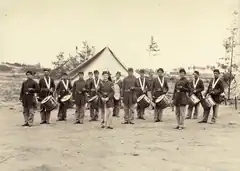 Most Pennsylvania soldiers fought in the Eastern Theater, with only about 10% serving elsewhere.[3] The thirteen regiments of the Pennsylvania Reserves fought as the only army division all from a single state, and saw action in most of the major campaigns and battles of the Army of the Potomac. The Philadelphia Brigade was also a rarity in that all of its regiments were recruited from a single city. In an unusual circumstance, the Philadelphia Corn Exchange sponsored and paid for a regiment, the 118th, which became known as the "Corn Exchange Regiment."[4]