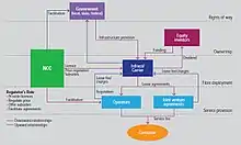 Phase 3 was licensed in 2003, as a national long-distance operator and in 2006 entered into a major strategic Public–Private partnership to access powerlines to carry traffic for telecommunication operators.[7] Phase 3 and Alheri Engineering were the two firms that beat 7 companies, including Siemens Nigeria, Suburban Telecom, NTL, Optic Networks Limited, and Backbone Company of Nigeria; to secure the deal.[8] Such access to a telecommunications-enabled infrastructure was to make it possible for both companies (with Phase3 planned layout pegged for Nigeria's north and Alheri Engineering's for the west) to build out reliable fiber-optic backbone networks, to ensure faster broadband penetration and nationwide connectivity in the Nigeria unserved and under-served communities.[9] Thus, making it possible for mobile operators, internet service providers, businesses, government agencies, and international organizations to take advantage of the huge bandwidth that is centrally managed.[10] And, in March 2006, Phase 3 finalized a 15 Years agreement for the Design, Build, Finance, Operate (DBFO) Telecommunications Infrastructure model for the Western part of Nigeria".[11] This largely positioned Phase 3 for expansive growth; the operational viability to run a layered range of telecoms, and value-added services as well as considerable access to foreign investment. More so, the company's capacity to offer non-discriminatory and non-competitive services to mobile operators became its distinctive factor as an open access network with unique right of way (RoW).[12]
