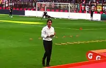 On 9 June 2014, Inzaghi was named manager of Milan's first team after the dismissal of his former Rossoneri teammate Clarence Seedorf.[81] In Inzaghi's first match as a manager in Serie A on 31 August, Milan defeated Lazio 3–1 at the San Siro.[82] Inzaghi then led Milan to a second consecutive win in a match that ended with a 5–4 Milan win against Parma.[83]