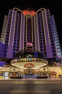 The hotel was built on the station site by Upland Industries, Union Pacific's real estate division, along with developer Frank E. Scott.[4] The hotel opened on July 1, 1971 with the casino opening at midnight following,[5] managed by a team of local casino executives including Sam Boyd, Jackie Gaughan, JK Houssels Jr, and Bill Boyd.[6] It was advertised as the largest hotel and casino in the world, with 500 rooms at its opening.[7][8][9]
