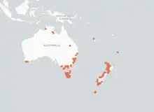 Podomitrium phyllanthus has a sparse distribution in Australia, New Zealand and New Caledonia.[1]