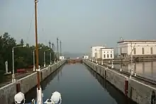 In the early 18th century, Peter the Great ordered the resettlement of peasants from the Msta River to the current location of Podporozhye to organize navigation along the Svir River, known for its nearly impassable rapids.[10] In the late 19th century, these minor settlements next to the Svir rapids (Sigovets and Medvedets) received the name of Podporozhye (literally, "under the rapids"). By the beginning of the 20th century, Podporozhye was a village and a part of Lodeynopolsky Uyezd in Olonets Governorate.[11] In 1922, Olonets Governorate was abolished and Lodeynopolsky Uyezd was transferred to Petrograd Governorate (later Leningrad Oblast).[11]
