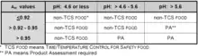 • Except as specified in Subparagraph (3)(d) of this definition, a FOOD that because of the interaction of its AW and pH values is designated as Product Assessment Required (PA) in Table A or B of this definition: