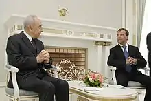 The Presidency of Shimon Peres, the ninth President of Israel, began after the 2007 Israeli presidential election on 13 June 2007 in which Peres defeated Reuven Rivlin and Colette Avital.[1] Peres was sworn in as President on 15 July 2007.[2] and served until Reuven Rivlin was sworn in as his successor on 24 July 2014.[3]