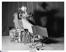 The Projection Planetarium was a training device housed in the Flight Research Laboratory hangar at NASA's Langley Research Center in Hampton, Virginia. It consisted of a custom designed star projector surrounded by a 40 feet (12 m) diameter sphere constructed from a surplus 53 feet (16 m) radome.[1] The star projector was movable in 3 directions while the capsule mockup and its pilots remained static. The system was used in studies of manual control of spacecraft using "out the window" visual information both in orbit and in a launch abort scenario. The planetarium was constructed in 1965 at a cost of $153,103 for research and development and $177,000 for construction and materials. An additional $145,400 worth of surplus materials were made use of in the project.[2][3]