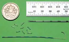 ![]() Figure 1. Single and stranded brachytherapy seeds showing relative sizes of the seeds and needles used for insertion | |
