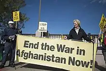 - ↑ "Protesters urge end to Afghan war". Retrieved 31 October 2014.
