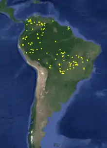 It is found in Bolivia, Brazil, Colombia, Costa Rica, Ecuador, Peru, Venezuela,[4] and French Guiana.[5]