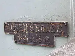 The road was originally 4 miles (6.5 km) long. The Royal Engineers built the first section to Sai Ying Pun with the help of 300 coolies from Kowloon (Hong Kong), then a territory of China. This section of Queen's Road ran parallel to the beach where Sir Henry Pottinger set up his tent in 1842.[1] Originally named Main Street, it was officially renamed Queen's Road in March 1842 after Queen Victoria of the British Empire.[2][3] It was mistakenly translated into Chinese as 皇后, meaning "queen consort",[4] instead of referring to the sovereign ruler (女皇).[5]