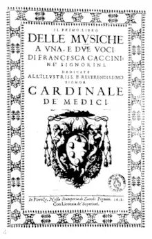 Francesca Caccini, "Primo Libro delle Musiche" (Florence, 1618). RISM ID no.: 990007800