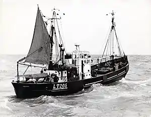 RV Platessa was based at the port of Lowestoft and was originally ordered by the Admiralty as one of 81 Motor Fishing Vessels (MFVs) in the ‘1501-Class’ during World War II.[4] Motor fishing vessels were small wooden craft, built-in large numbers during the war for use as Ship's tenders.