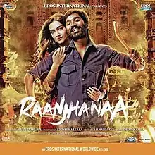 Raanjhanaa is the soundtrack album, composed by A. R. Rahman of the 2013 Hindi film of the same name, directed by Anand L. Rai and starring Dhanush, Sonam Kapoor and Abhay Deol in the lead roles. The film is produced by Krishika Lulla under the banner Eros International. The lyrics of the original version were written by Irshad Kamil whereas the Tamil lyrics were written by poet Vairamuthu. The soundtrack album features nine original tracks.[4] The music of the original version of the soundtrack was released on the co-branded record labels Sony Music India and Eros Music[5] on 11 June 2013 and the Tamil version on 24 June 2013.