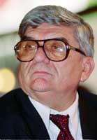 Radmilo Bogdanović (Serbian Cyrillic: Радмило Богдановић; 7 October 1934 – 25 October 2014) was a high-ranking official of the Socialist Party of Serbia. He served as Minister of the Interior during major protests in 1991, after which he was forced to resign.