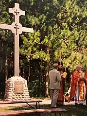 The cross and monument were sanctified by Mgr Alexander Nadson, Apostolic Visitor for Belarusian Catholics abroad.