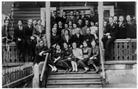 Graduates of Adam Mickiewicz Gimnazium in Pružany before examination. Žuk-Hryškievič is second on the left in the bottom row.