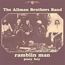 "Ramblin Man" is a song by American rock band The Allman Brothers Band, released in August 1973 as the lead single from the group's fourth studio album, Brothers and Sisters (1973). Written and sung by the band's guitarist, Dickey Betts, it was inspired by a 1951 song of the same name by Hank Williams. It is much more grounded in country music than other Allman Brothers Band compositions, which made the group reluctant to record it. Guitarist Les Dudek provides guitar harmonies, and it was one of bassist Berry Oakley's last contributions to the band.