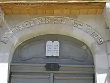 Verse of Torah and the Tablets of Stone above the entrance to the building