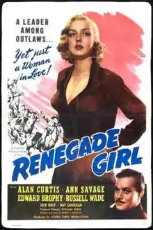 Renegade Girl is a 1946 American western film directed by William Berke and starring Ann Savage, Alan Curtis and Edward Brophy.[1][2] It was one of a few movies made by the short-lived Affiliated Productions, and was released through Robert L. Lippert's Screen Guild Productions.[3]