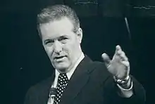 Humbard was born on August 13, 1919, in Little Rock, Arkansas, to Pentecostal evangelists.[1] He began attending church revivals all across the country and began to know God as a child, while withstanding the order from his father in learning how to play guitar while in church.[2] Humbard was also the first evangelist to have a weekly nationwide television program in the United States, running from 1952 to 1983, although his first television broadcast was in 1949.[3] Humbard's $4 million Cathedral of Tomorrow church in Cuyahoga Falls, Ohio, a suburb of Akron, was built in 1958 specifically to accommodate television equipment, crew and chorus, as well as seating for 5,400 people.