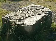 The link passes under the B6241 Tom Benson Way, immediately followed by a bridge carrying the Blackpool South branch line from Preston to Salwick, before it reaches the first of the boater-operated locks. Surplus water bypasses Lock 4 via a weir and a meander to the north of the site.[58] The sculpture 'Fire' by Dagnall, a large block of stone polished with graphite to make it look like coal and engraved with a fossilised fern on the top, is close to the lock.[64] The link is crossed by Savick Way before it reaches Lock 5, where the weir and meander are similar in layout to that at Lock 4. To the north of this section is a quiet public park, while to the south is the 'hay meadow', part of the Ribble Link Development, identified as being of 'national significance'. Public access is approved and welcomed. The third of Dagnall's sculptures representing 'Air', consisting of two interlocking tree trunks straddling the towpath was close to Lock 5 but was removed in 2009.[64]