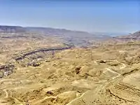 The Wadi Mujib (Arabic: وادي الموجب, Wadi el-Mujib), also known as Arnon Stream (Hebrew: נַחַל ארנון[1]), is a river in Jordan. The river empties into the Dead Sea circa 420 metres (1,380 ft) below sea level.[2] Today, the Wadi Mujib is fed by seven tributaries. The western part of the river is the site of the Mujib Biosphere Reserve, popular for hikes & canyoning amid dramatic rock formations.