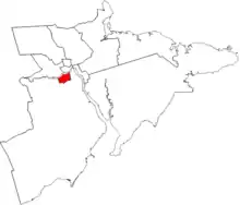 The riding of Riverview (as it exists in 2014) in relation to other southeastern New Brunswick electoral districts