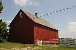 The farmstead's red barn was built in 1886 by Andrew Feller, Bob's grandfather, and still stands as of 2020.